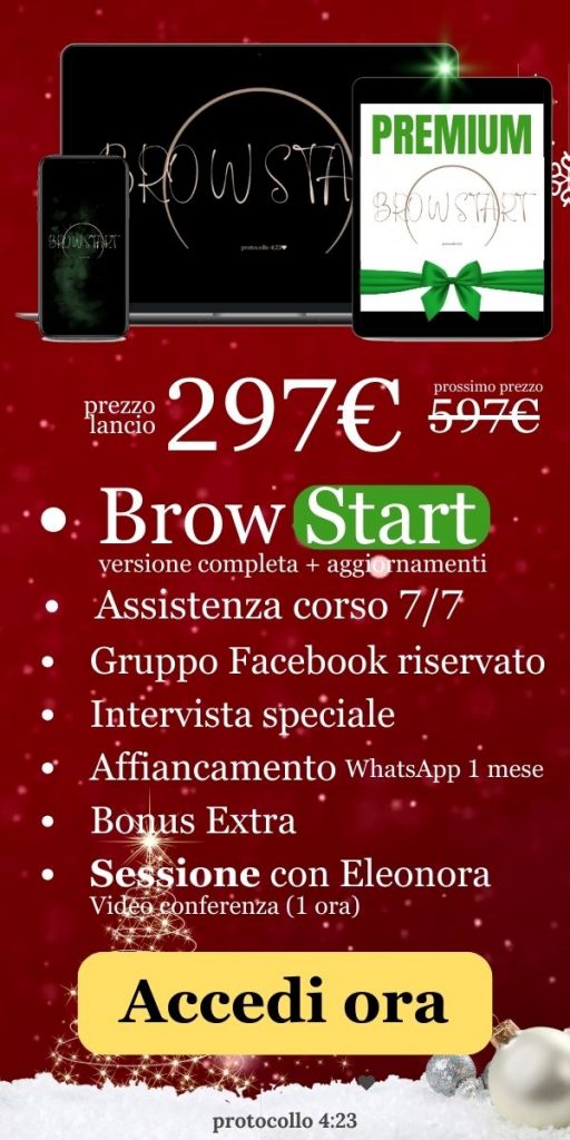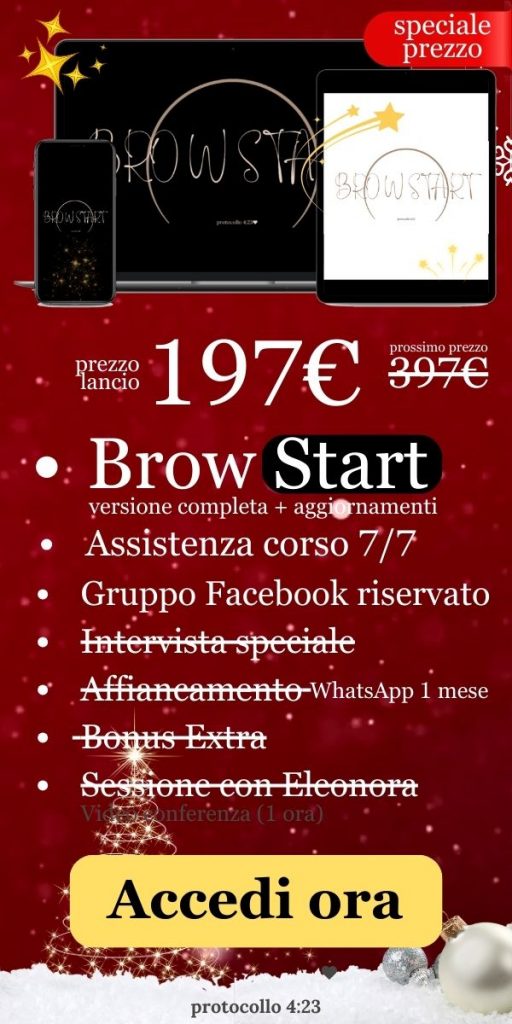 DISCLAIMER: Nella natura della trasparenza e dell’autenticità del sito, all’interno trovi contenuti di formazione altissimo profilo, tuttavia ognuno segue, pratica ed applica tali informazioni come meglio crede. Quindi, Eleonora Di Properzio e il Brow Bar 4:23 si solleva da qualsiasi responsabilità per applicazione senza una diretta supervisione.