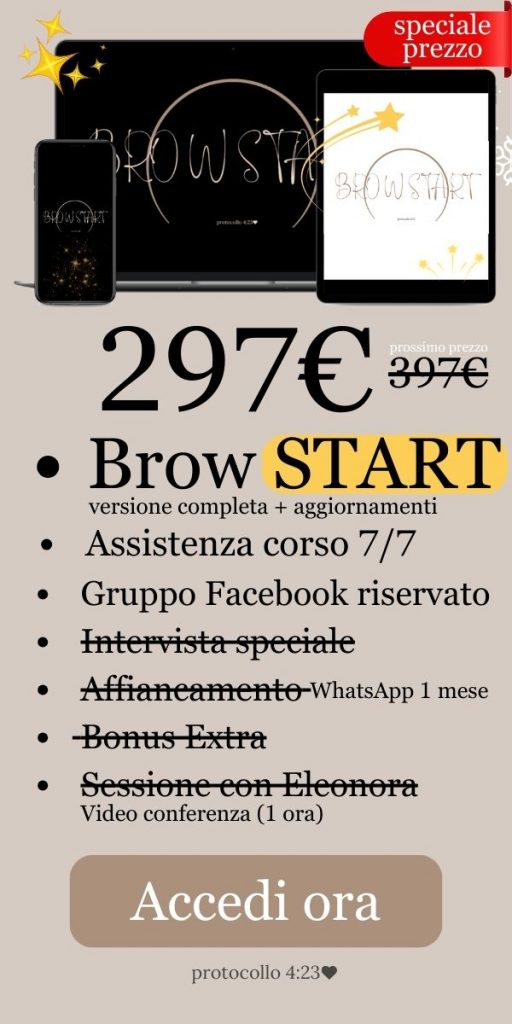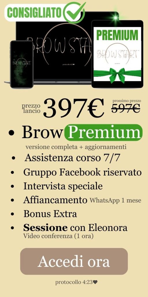 VERSIONE PREMIUM a soli 397€(anziché 599€) .Programma completo BROW START + bonus extra + consulenza con Ele.