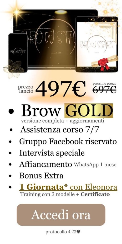 VERSIONE GOLD a soli 497€(anziché 697€) .Programma completo BROW START + bonus extra + giornata dal vivo con modelle + Eleonora.