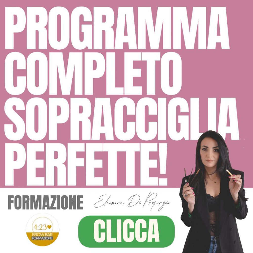 IMPORTANTE: La formazione 4:23 Sopracciglia Perfette propone un modello innovativo di apprendimento che unisce formazione online e Training (allenamento) con modelle dal vivo. Alcuni programmi possono non essere, o non essere, momentaneamente disponibili oppure erogati manualmente dal team interno in base alla tua situazione. Per ricevere una consulenza Gratuita da parte di un nostro coach di riferimento, contattaci su WhatsApp.